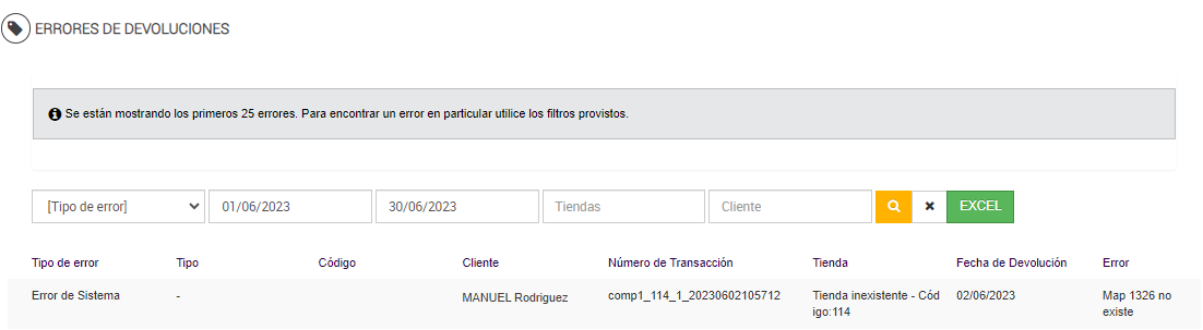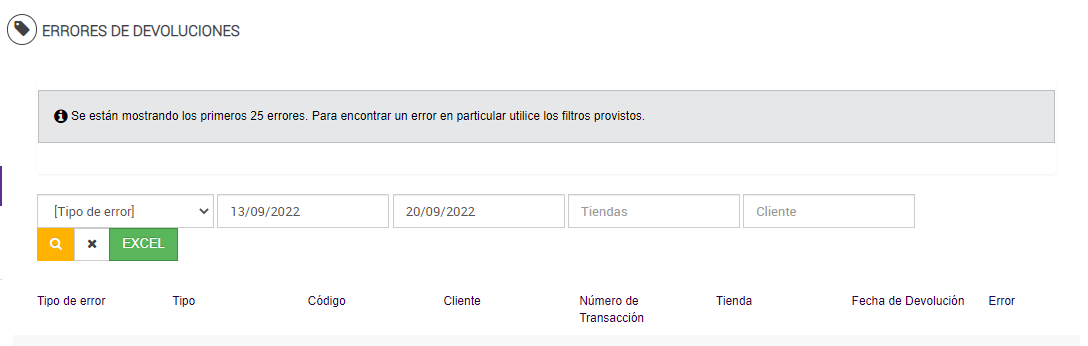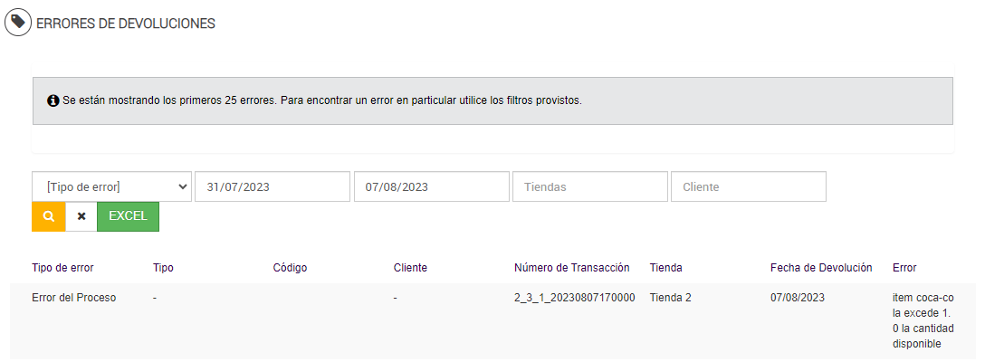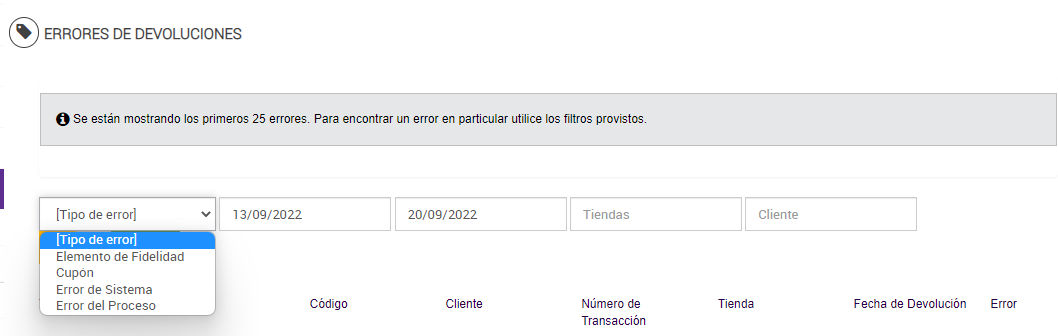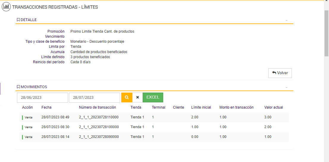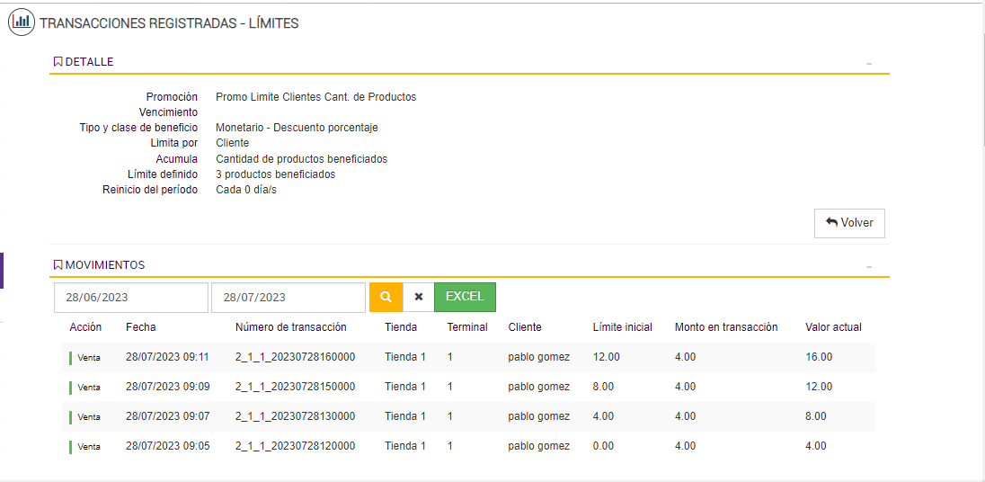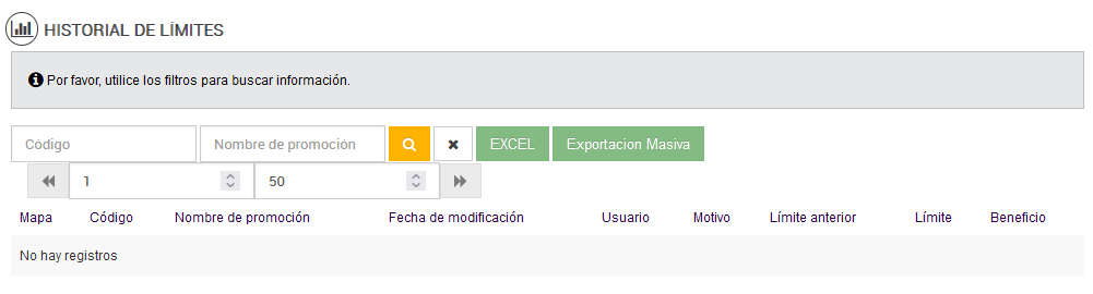 En el Informe historial de límite solo aparecen las promociones cuyo límite fue modificado y que se encuentran asociadas a tiendas configuradas para el usuario.