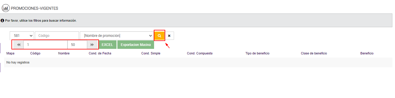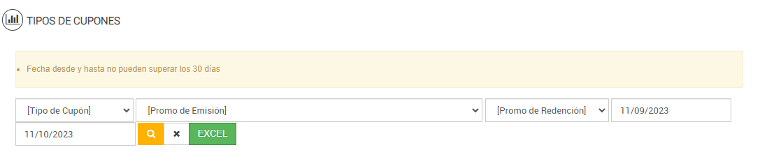 - Fechas: podrá buscarse por las promociones vigentes o vencidas en una fecha determinada.