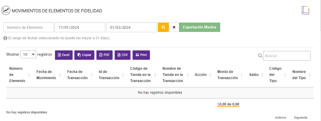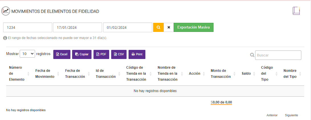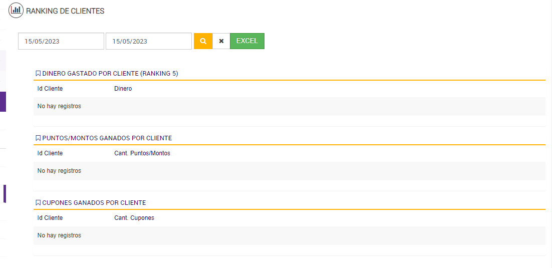 El objetivo de esta sección es brindar a los administradores y operadores de marketing o fidelización una herramienta clara y accesible para hacer seguimiento del comportamiento de compra de los clientes, evaluar la efectividad de los programas y validar que los beneficios se estén otorgando correctamente.