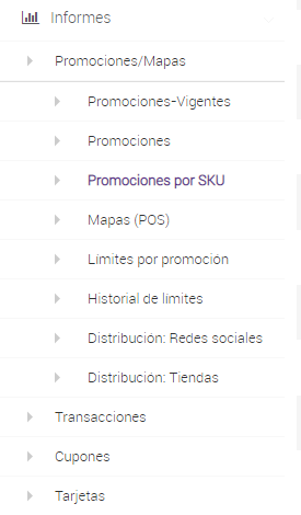 Por medio de este informe podrán visualizarse límites definidos de los beneficios de promociones vigentes en mapas activos.
