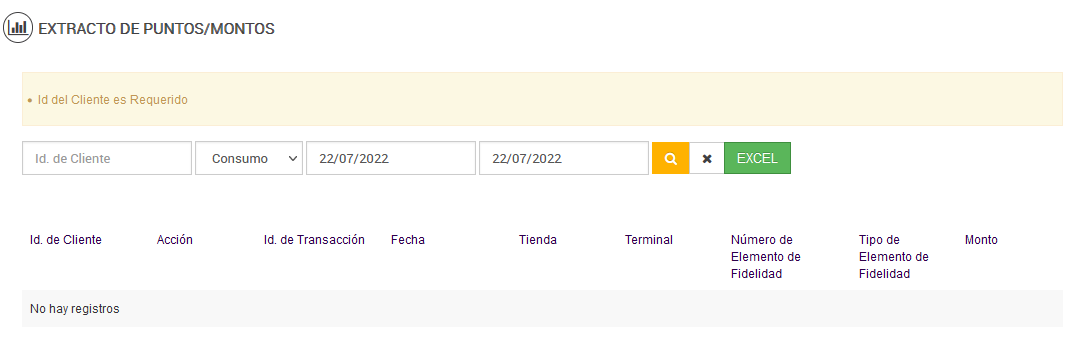 Permite ingresar un número de cliente para consultar sus acumulados actuales.