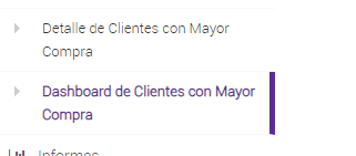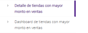 Para ingresar se debe presionar en el ítem "Dashboard de tiendas con mayor monto en ventas" del menú Productividad de Promo