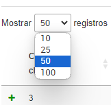 - "El filtro desplegable que se encuentra a la izquierda, permite seleccionar la cantidad de registros a visualizar en pantalla:
