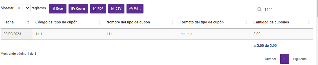 El cupón informativo es el único tipo de cupón que no se muestra en el informe "Detalle de Transacciones por Tienda" porque este tipo de cupón no se canjea, solo se utiliza para informar sobre una situación.