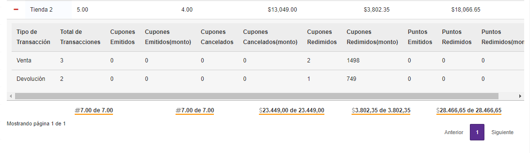 - Tienda: en la que se llevó a cabo la transacción. Cuando la tienda no está registrada en promo, mostrará su código.