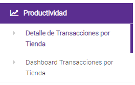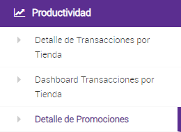 Para ingresar al mismo, se debe presionar el ítem "Detalle de Transacciones por Tienda" del menú Productividad de Promo