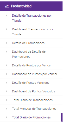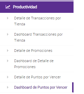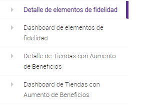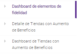Se ingresa desde: Productividad/ Dashboard de elementos de fidelidad: