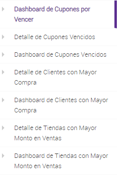 - Cupones Redimidos: Cantidad de cupones redimidos, en la tienda para el periodo seleccionado.