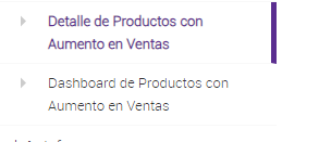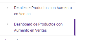 Se ingresa desde: Productividad/ Dashboard de Productos con Aumento en Ventas: