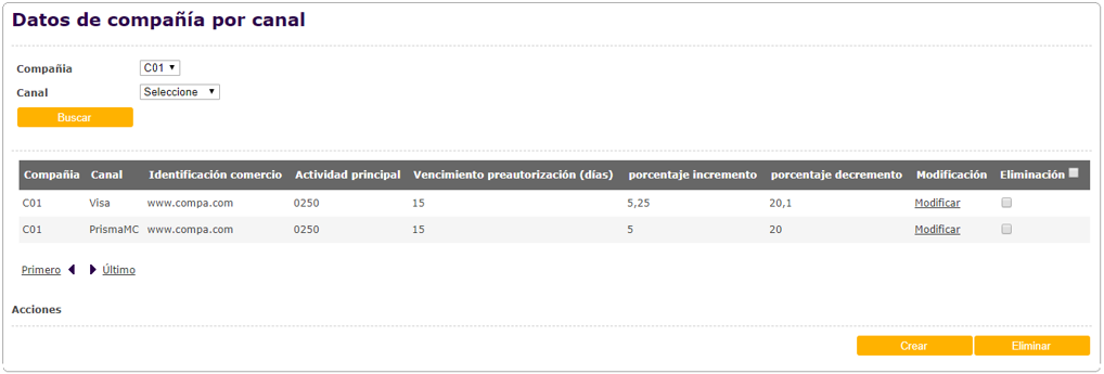 Al presionar el botón "Buscar", se desplegará una grilla con los resultados de la búsqueda, según los filtros ingresados. En la grilla de resultados, se podrá seleccionar la acción "Modificar" donde se desplegará un detalle del Template seleccionado, y se podrán modificar los datos.