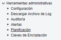 Provee información detallada de la funcionalidad de auditoría, configuración avanzada, eventos del sistema, alertas y planificación de procesos.