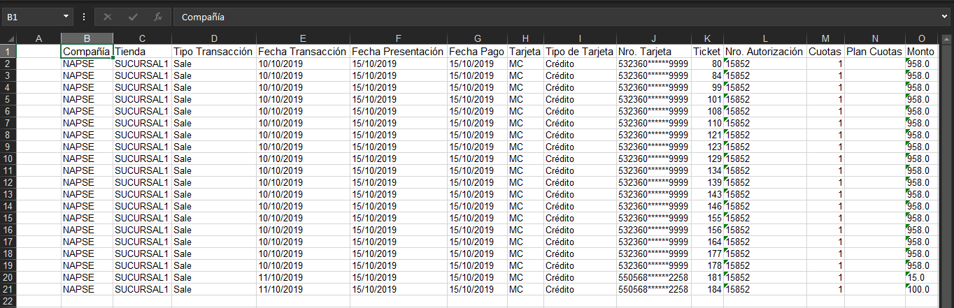 • Si se envía a generar TODAS las cajas de un local, el archivo tendrá el siguiente formato: