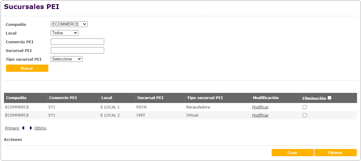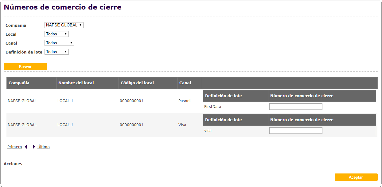 Efectuada una búsqueda, se puede visualizar la información resumida de las ventas eCommerce en la grilla de resultados: