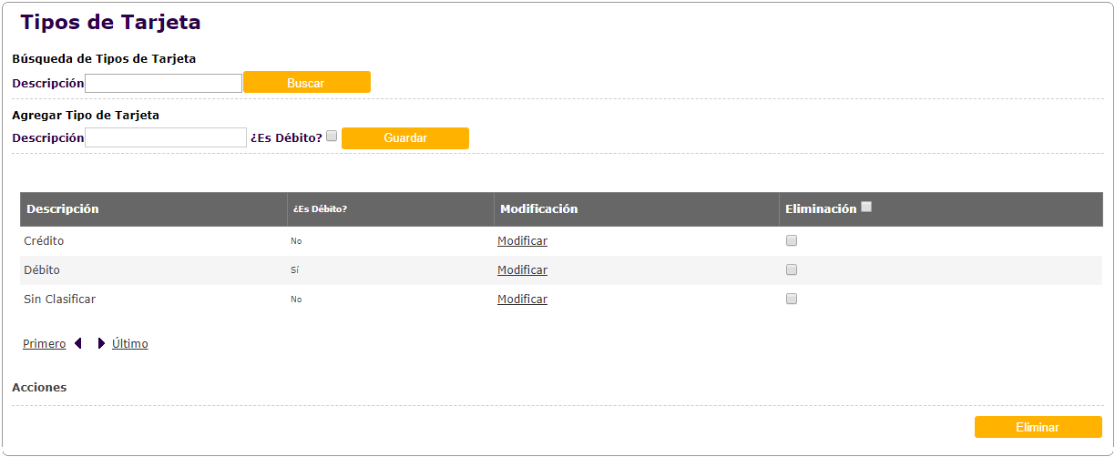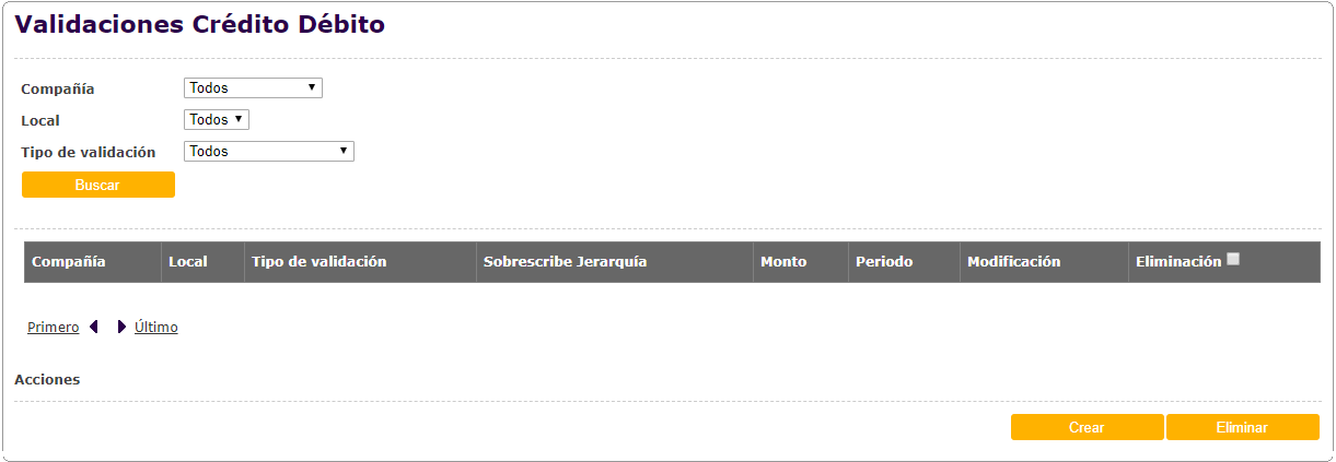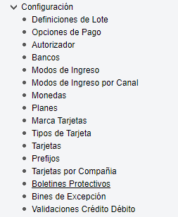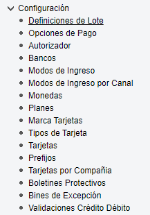 Agregado de apartado Validaciones Crédito Débito