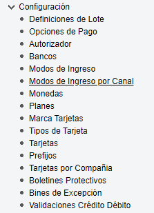 Actualización de pantallas de configuración para operar PEI con tarjeta no presente.