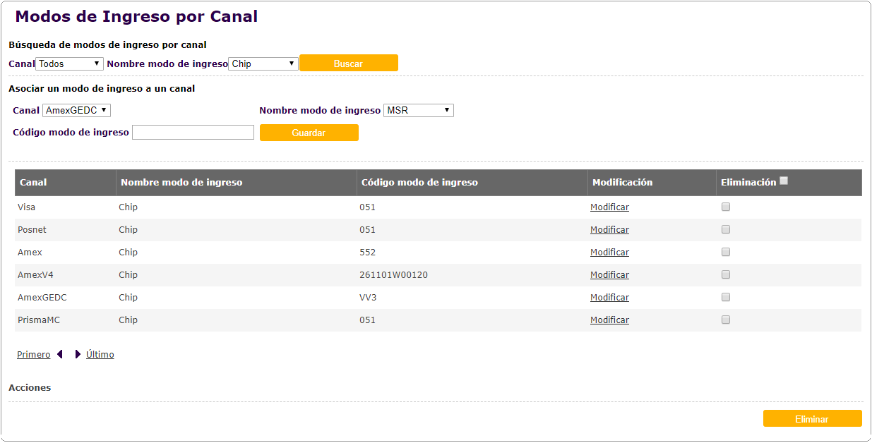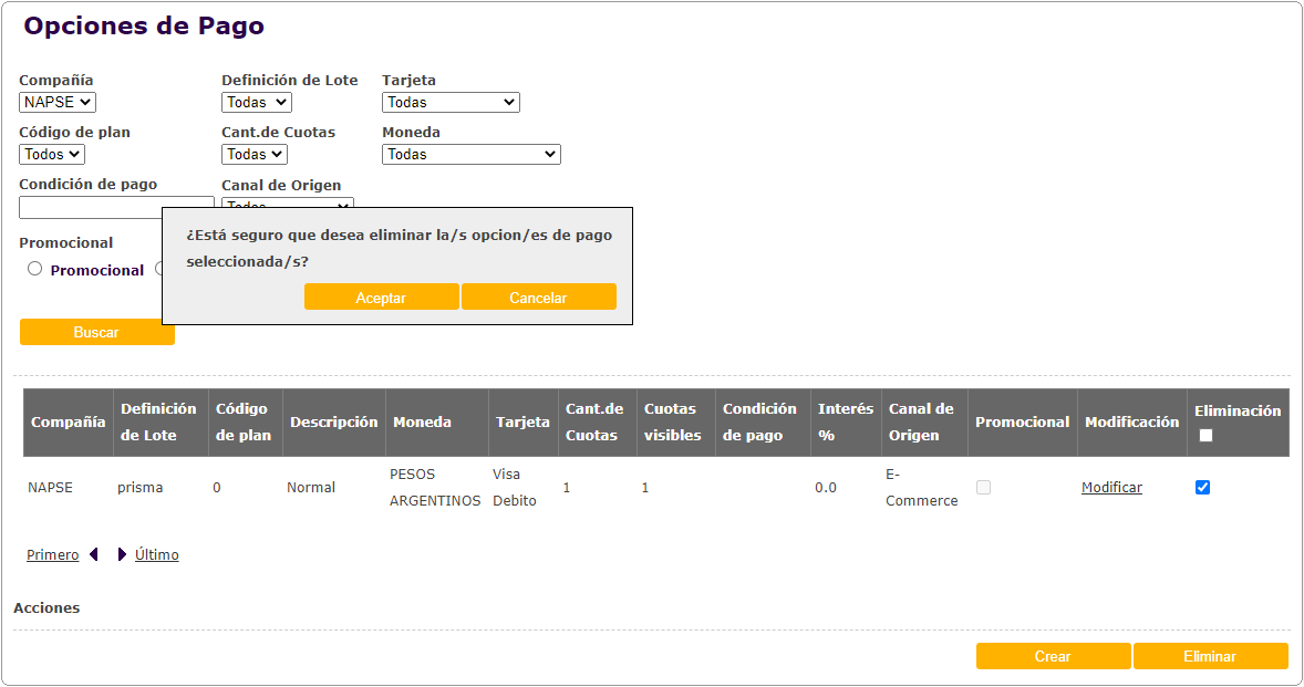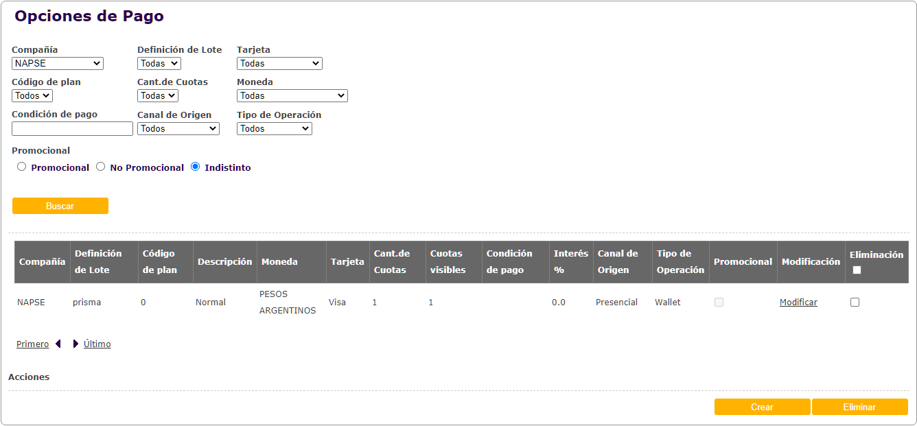 Actualización de pantalla de Opciones de pago, donde se incorpora el Canal de origen para cada opción de pago.