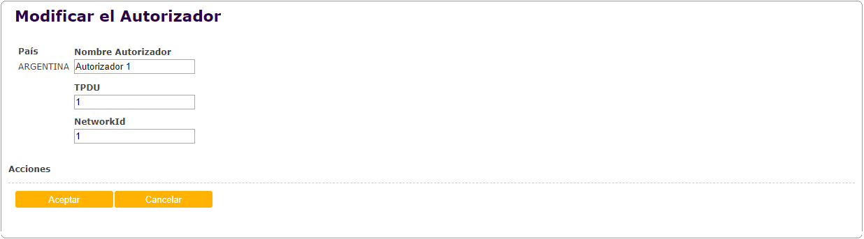 Para modificar un template se debe presionar el botón "Modificar" en la pantalla de búsqueda, ante lo cual el sistema solicitará el ingreso de los siguientes datos: