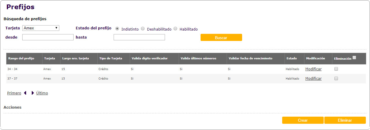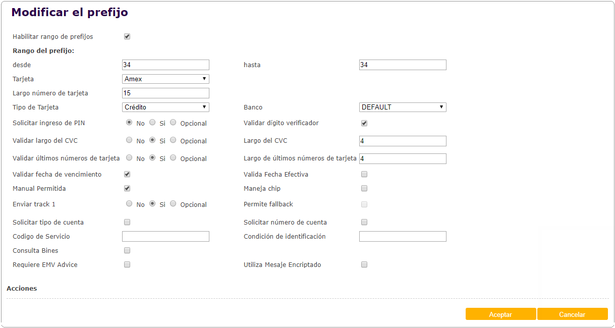 Agregado parámetros Prefijos y opciones de pago