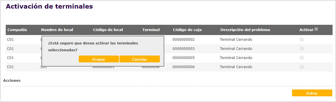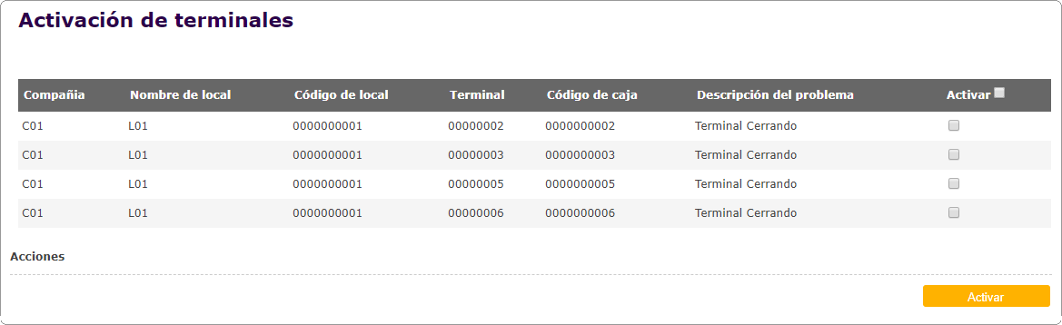 Agregado Activación de Terminales