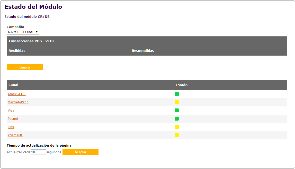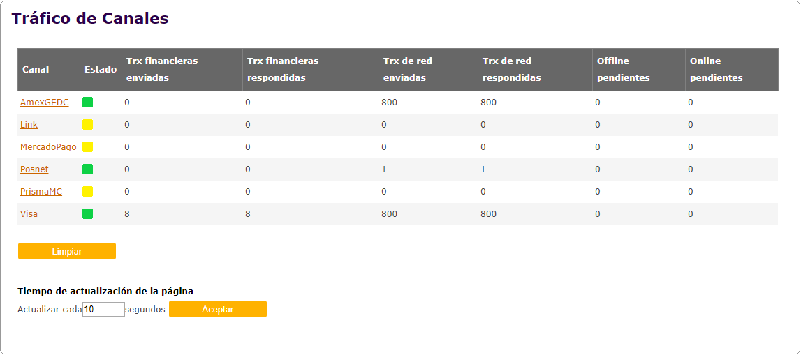 Brinda la información necesaria, con el nivel de detalle suficiente para que el usuario pueda monitorear el estado del sistema y los canales, así como también obtener información sobre el procesamiento de las transacciones y realizar las tareas de administración correspondientes.