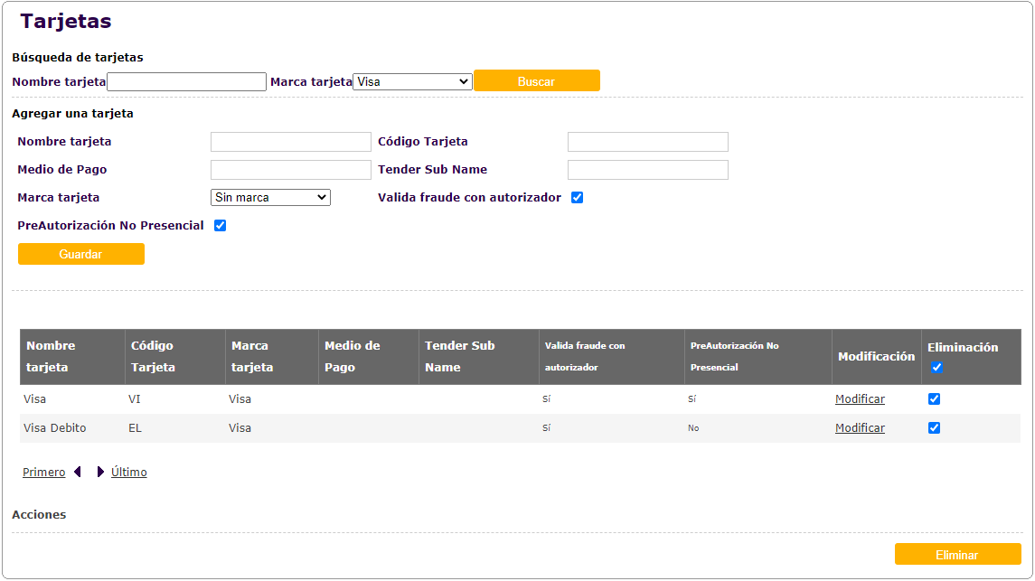 Actualización de pantalla de Tarjetas, donde se incorpora el flag de validación de fraude con autorizador y activar pre-autorizaciones en Tarjetas