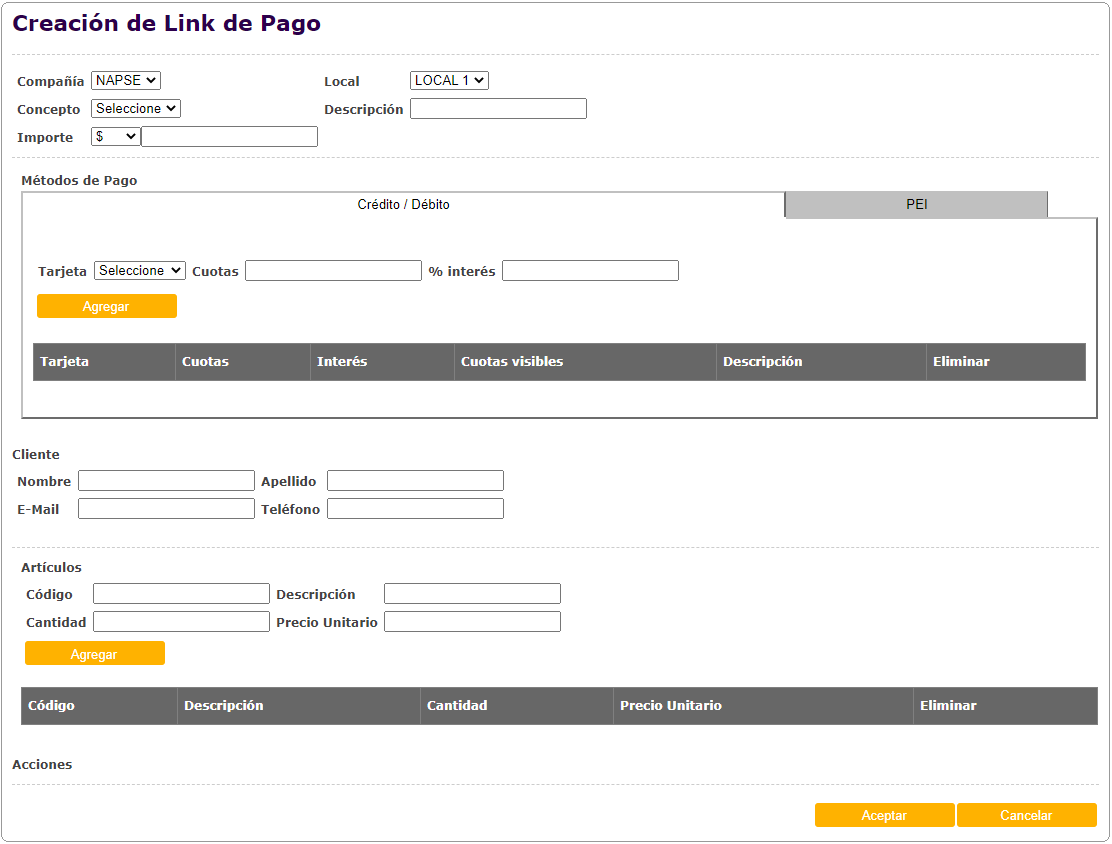 Actualización de pantallas de Link de pago para crear links de pago con PEI.