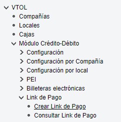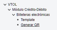 Para acceder a la pantalla, seleccionar la opción "Generar QR" dentro del menú: VTOL > Módulo Crédito-Débito > Billeteras electrónicas > Generar QR