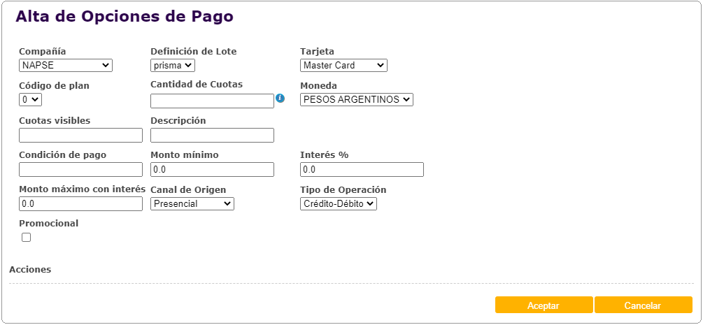 Agregado de campo Promocional en Opciones de Pago