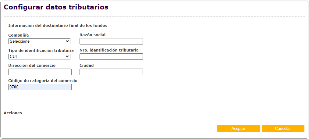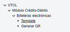Para acceder a la pantalla, seleccionar la opción "Template" dentro del menú: VTOL > Módulo Crédito-Débito > Billeteras electrónicas > Template