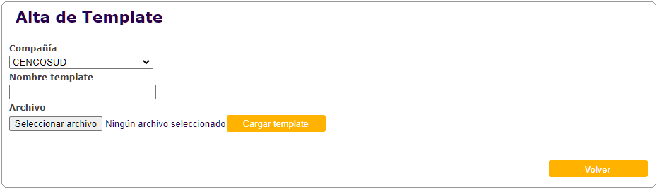 Presionar "Cargar template" para confirmar el alta, caso contrario presionar "Volver".