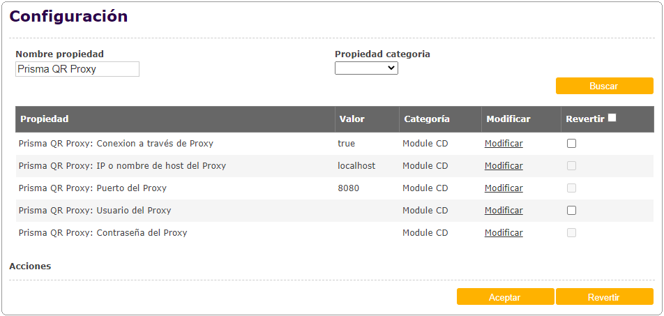 Agregado de configuración y propiedades de configuración relacionados a la funcionalidad QR Adquiriente Prisma.