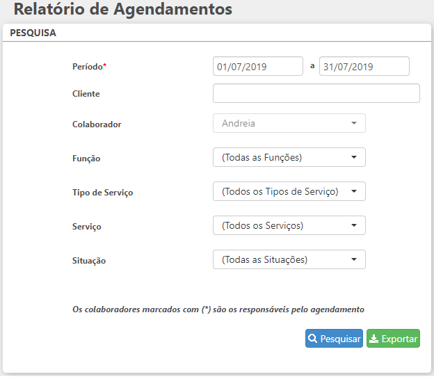 Através deste relatório será possível consultar todos os agendamentos realizados.