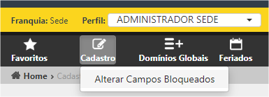 O acesso a rotina Alterar Campos Bloqueados deve ser realizado através do ambiente Sede.
