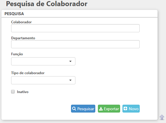Ao clicar nesta opção o usuário será direcionado para a rotina Pesquisa de Colaborador e serão exibidos os filtros: