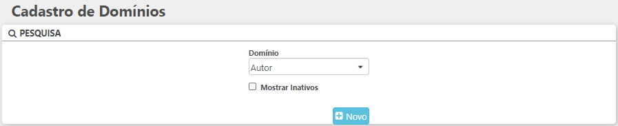 • Mostrar Inativos: permite exibir os cadastros do domínio "Autor" que estão inativos;