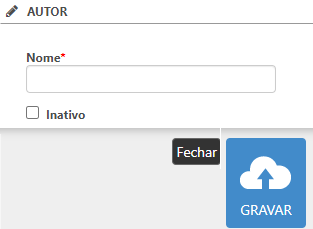 - Para cadastrar um novo autor, clique no link Novo Autor. Será aberta uma janela, deve ser preenchido o campo Nome e ao clicar em Gravar, a opção estará disponível no campo para seleção.