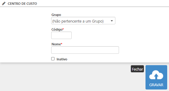 • Código: deve ser inserido o código do centro de custo;