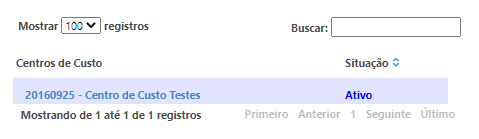 Na listagem dos centros de custo cadastrados serão exibidas as seguintes informações: