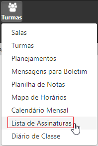 Para visualizá-la acesse Menu Turmas > Lista de Assinaturas.