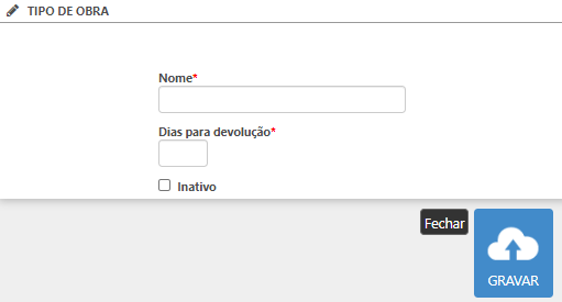 - Dias para devolução: deve ser inserida a quantidade de dias em que deve ser realizada a devolução da obra;