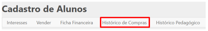 Localize o aluno que terá a venda cancelada e acesse o Histórico de Compras: