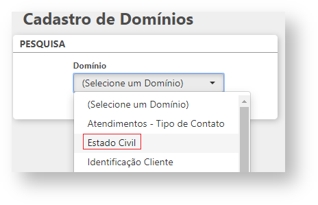 Através deste domínio global serão cadastrados os estados civis utilizados para configuração de cliente e colaborador.