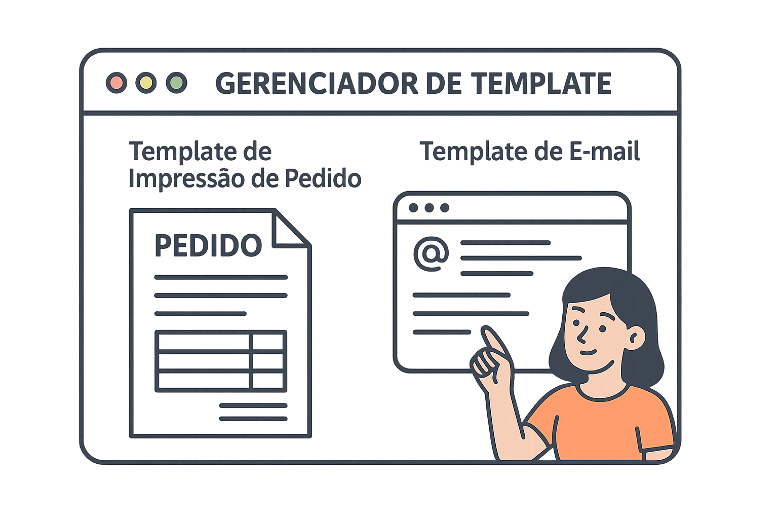 - 📧 Templates para diversas finalidades, incluindo e-mails administrativos e layouts de impressão de pedidos, com possibilidade de pré-visualização em tempo real dos modelos.
