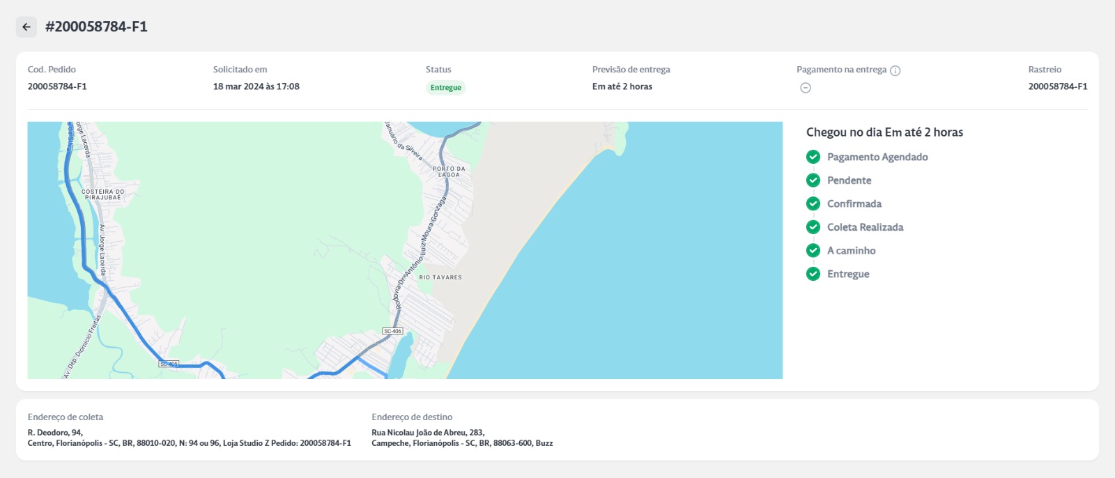 A Stone Entrega permite que o cliente acompanhe cada passo do seu pedido (para o nosso cliente e para o consumidor final: https://entrega.stone.com.br/app/track-my-delivery, para entregas same hour em tempo real. O rastreio também é enviado, e pode ser compartilhado, com o consumidor final através do link abaixo. Para acompanhamento, se faz necessário o usuário preencher o Id do pedido e começar a navegar.