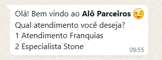 3- Ao selecionar a opção numero 1 - Suporte técnico, você será direcionado ao time do Alô franquias, para duvidas de suporte ou implantação do sistema.