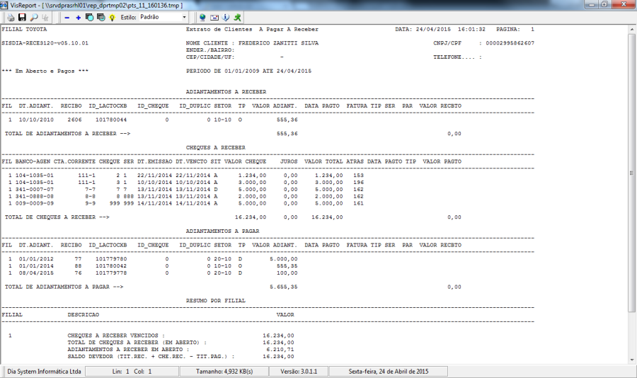 RECE3120 Extrato de Clientes (A Pagar e A Receber)