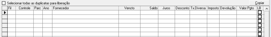 1.4 Selecione as duplicatas que serão liberadas ao selecionar a coluna LB;