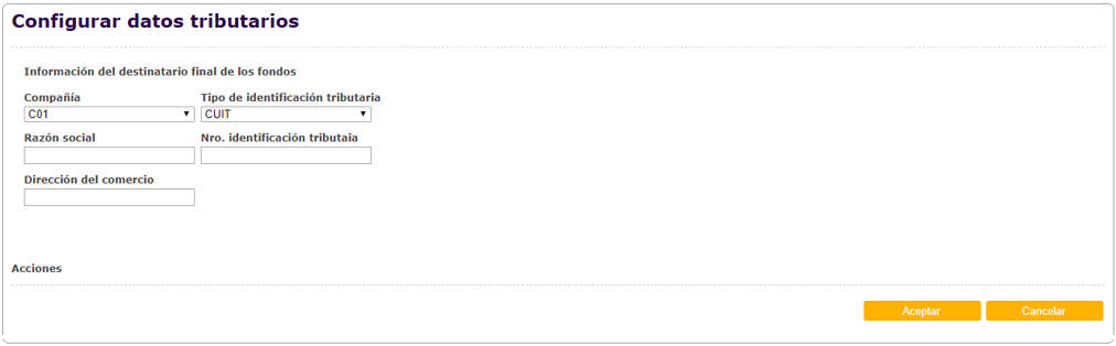 Para cargar datos tributarios se debe presionar el botón "Crear", ante lo cual el sistema solicitará el ingreso de los siguientes datos: