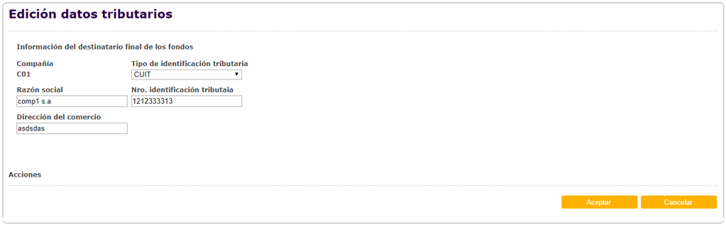 Presionar "Aceptar" para guardar los cambios o "Cancelar" para descartarlos. Al presionar "Aceptar" se solicitará confirmar la modificación, mediante el despliegue de un pop-up.