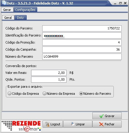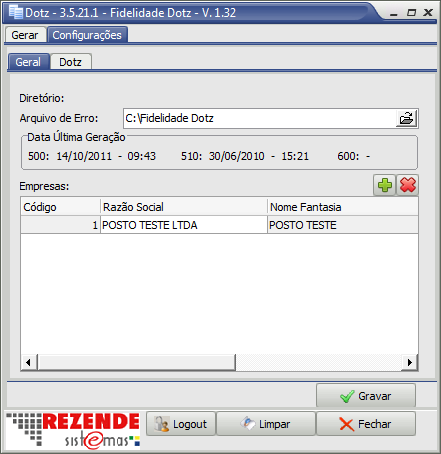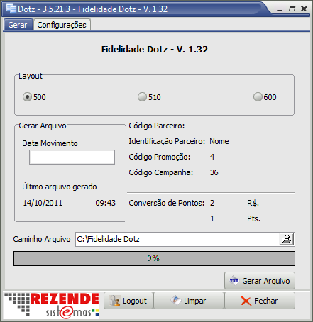 Configuração do Gera Arquivo Dotz